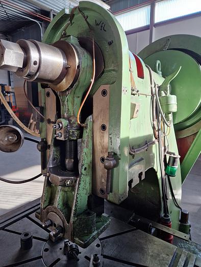Exzenterpresse inkl. Schrank mit Zubehör max. Druck --- 40 Tonnen Hublänge --- 6 - 80 m/m Maximale Verlängerung der Pleuelstange --- 45 m/m Größter Schnittbereich --- 1000 m/m Schwungradumdrehungen --- 22 Uhr